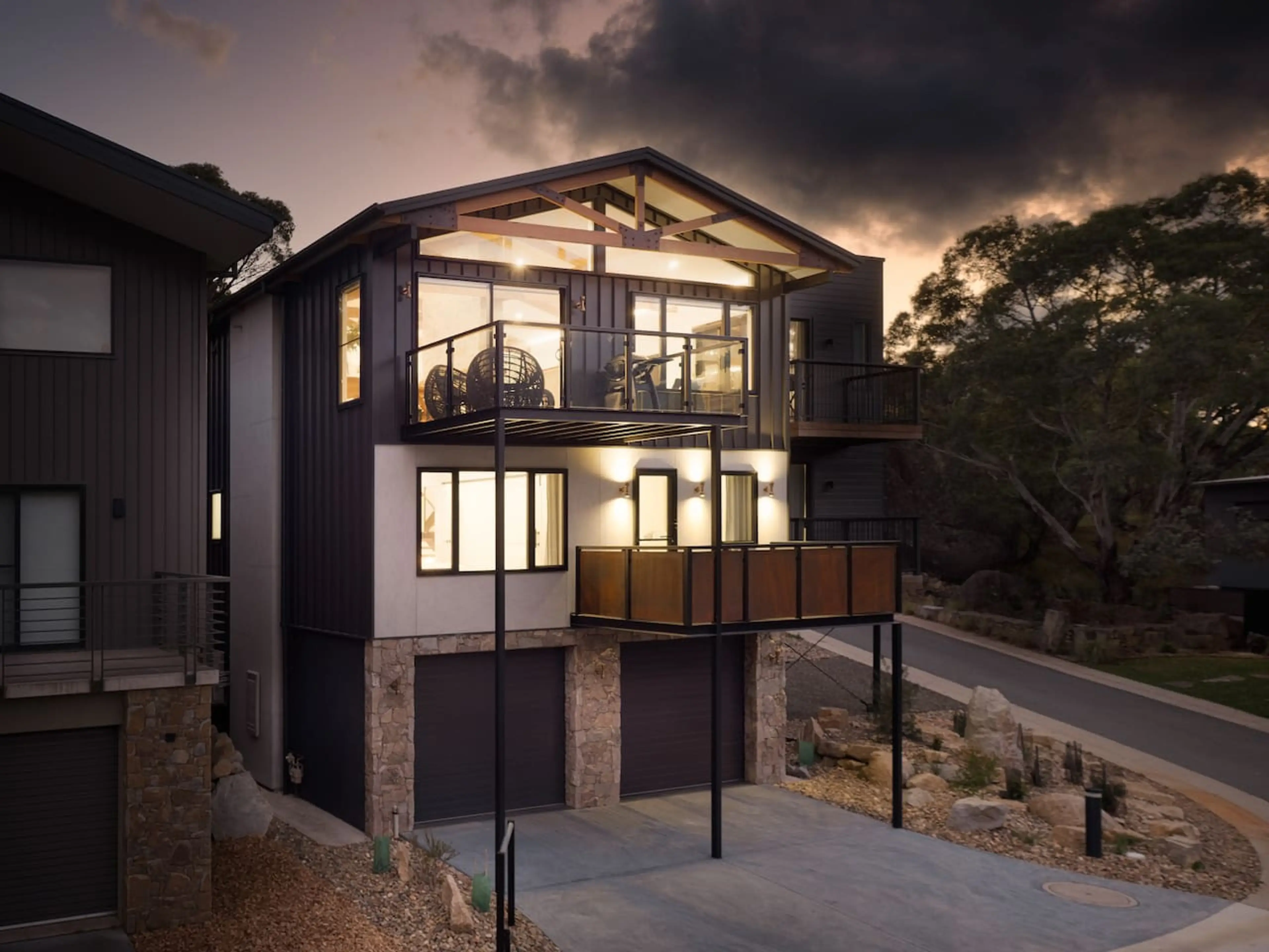 The Rocky Descent is a newly built, high-end modern farmhouse chalet that redefines luxury in the heart of Crackenback. This designer two-bedroom retreat sprawls gracefully over three levels, ensuring an experience of unparalleled comfort and elegance. Step into the top-floor living space and be gr...